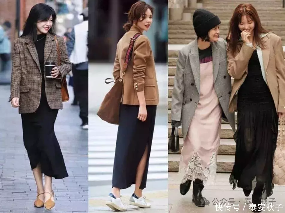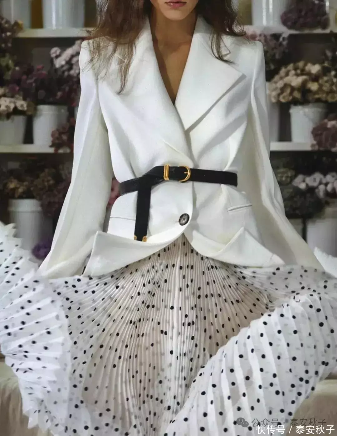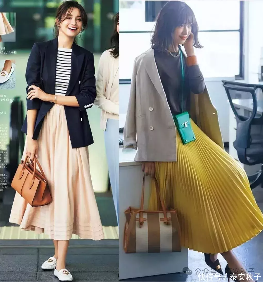 西装+大摆裙的美,是休闲干练,又轻盈飘逸的